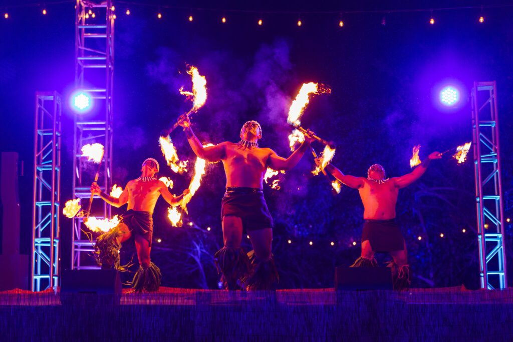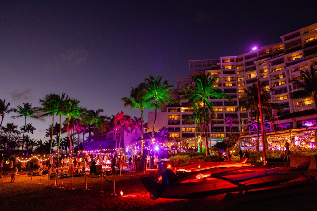 To honor the island’s culture and provide an enriching experience for this astute group, we layered the authentic final luau with breathtaking sights and sounds. The evening began with sunset beach-side cocktails. A conch-blower and Polynesian drums drew the crowd to the seated dinner, where we curated a crescendo of performers across three stages. Singers, hula dancers, fire-knife performers and storytellers combined to share local history and legends. A concert with a beloved local band capped off the entertainment, but the afterglow lingered.